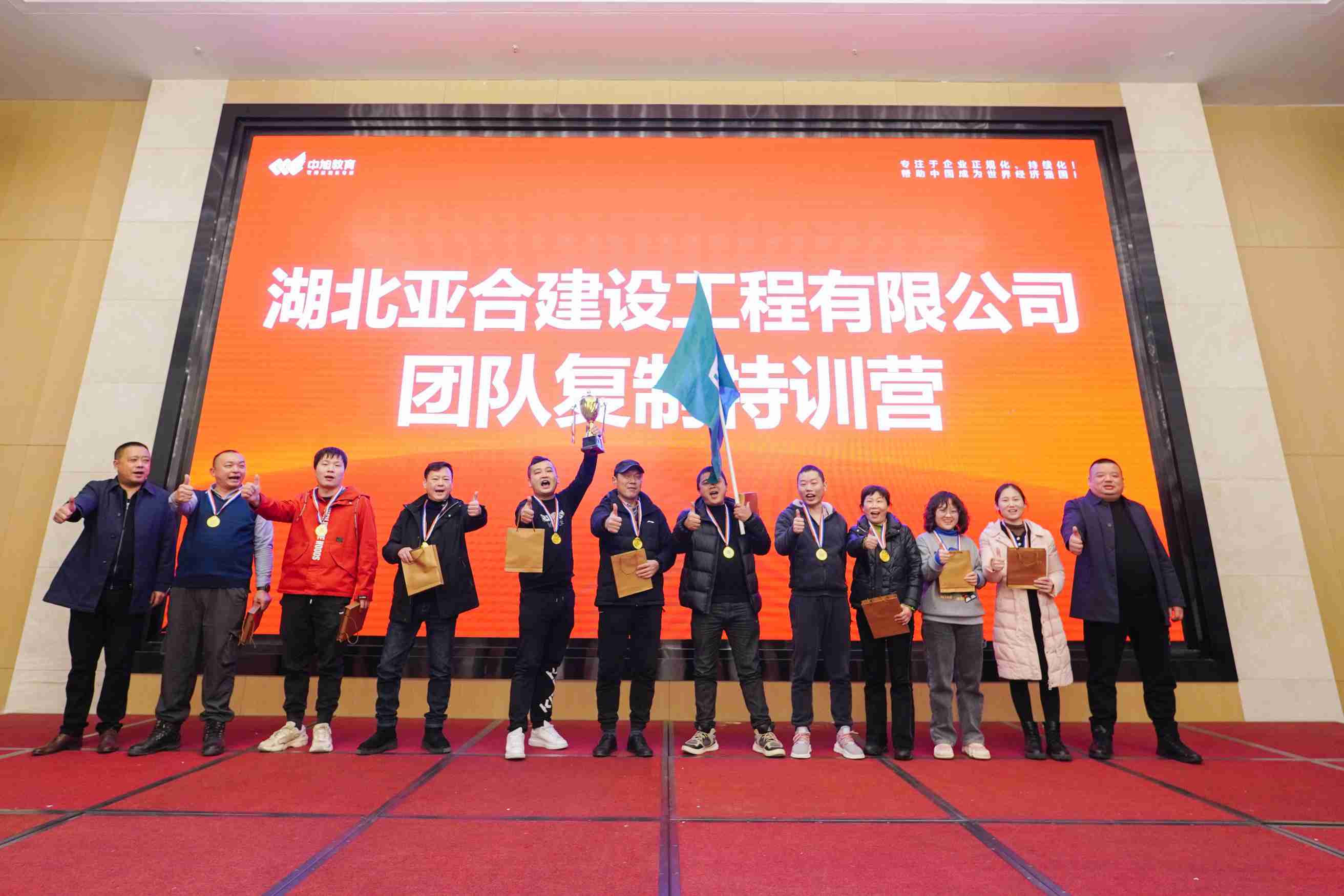 湖北亞合建設工程有限公司攜手中旭教育舉辦《團隊復制》特訓營,旨在通過訓練強化員工對凝聚力的認識,啟迪和挖掘自身執行的潛能,系統學習凝聚力的理論與內涵,掌握正確達成目標的方式方法,明確達成團隊目標的方向。